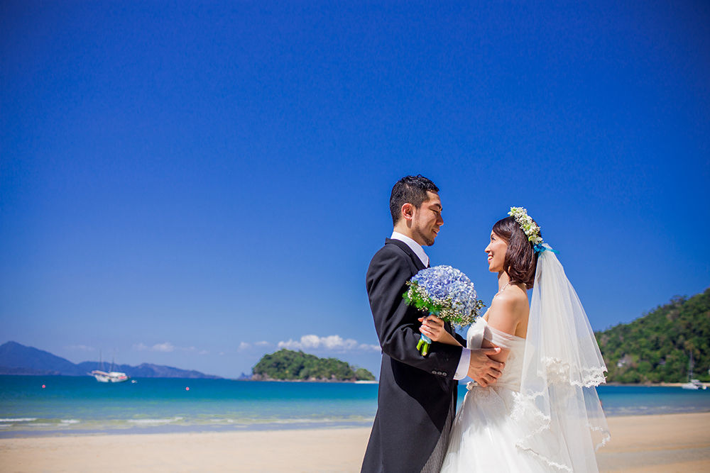 青い空、青い海の目の前のビーチウェディング~