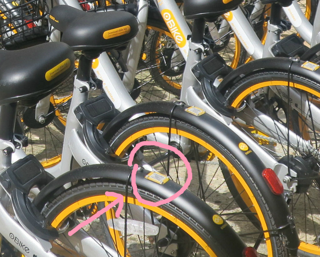 使い終わったら、所定のObike駐輪場所に戻して鍵をかけて終了♪♪という、