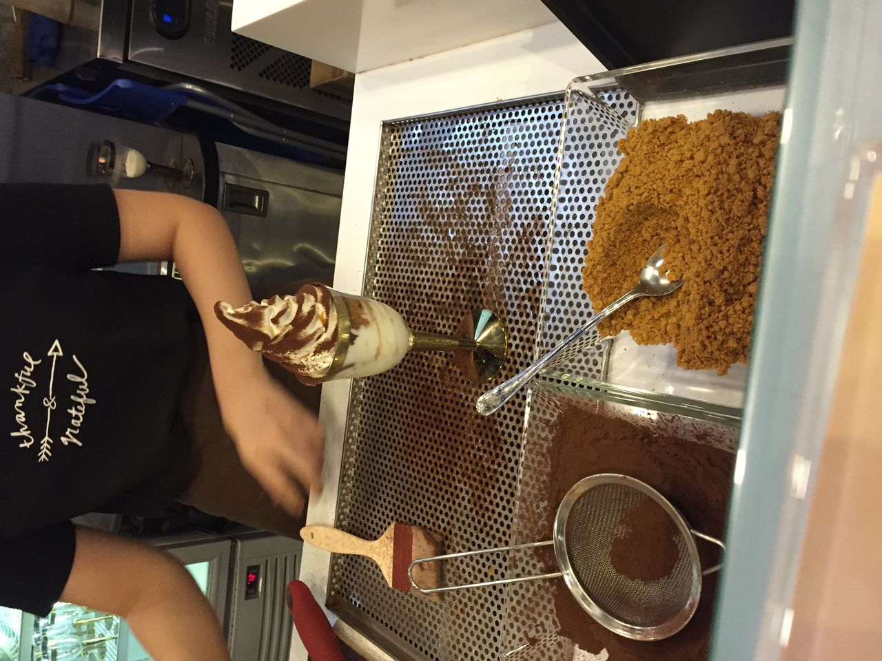 マスカルポーネチーズやソフトクリーム、クランチ、コーヒー、ココア・・