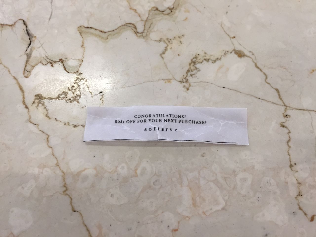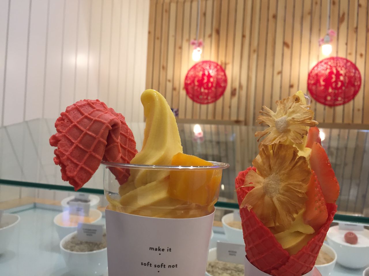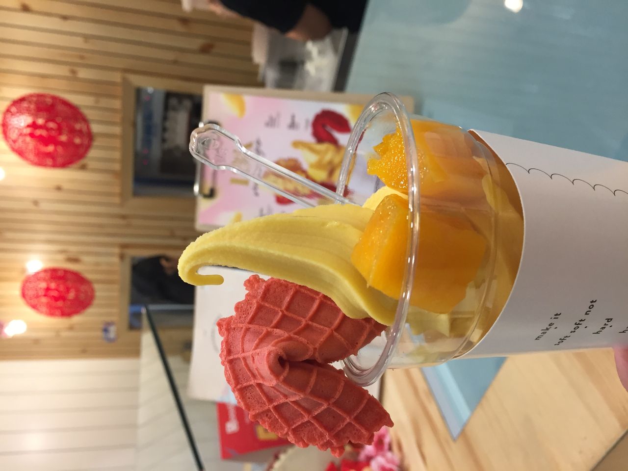 マンゴー味のソフトに、フォーチュンクッキー付き