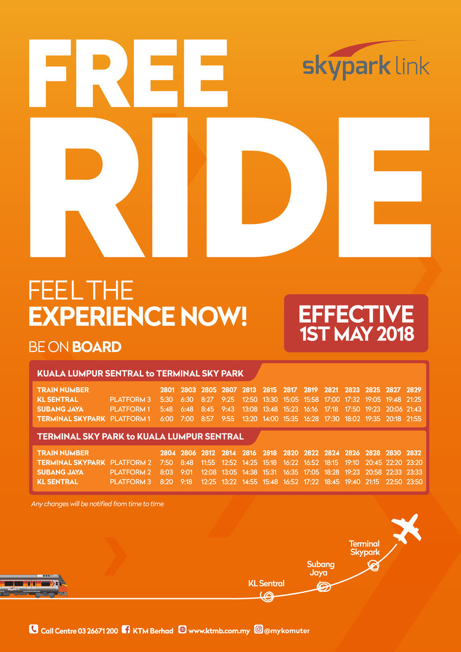 KL-スカイパークターミナル間が無料で乗車できます