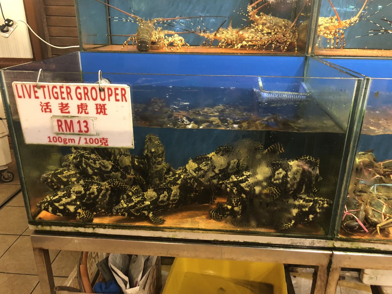お店の看板メニューのロブスターはかなり高級で1尾RM200~250くらい。
