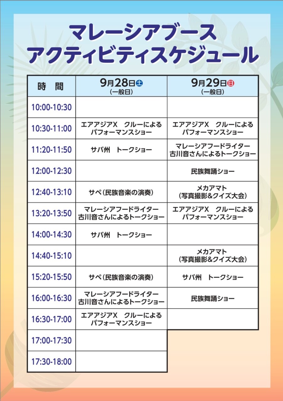 マレーシアブーススケジュール