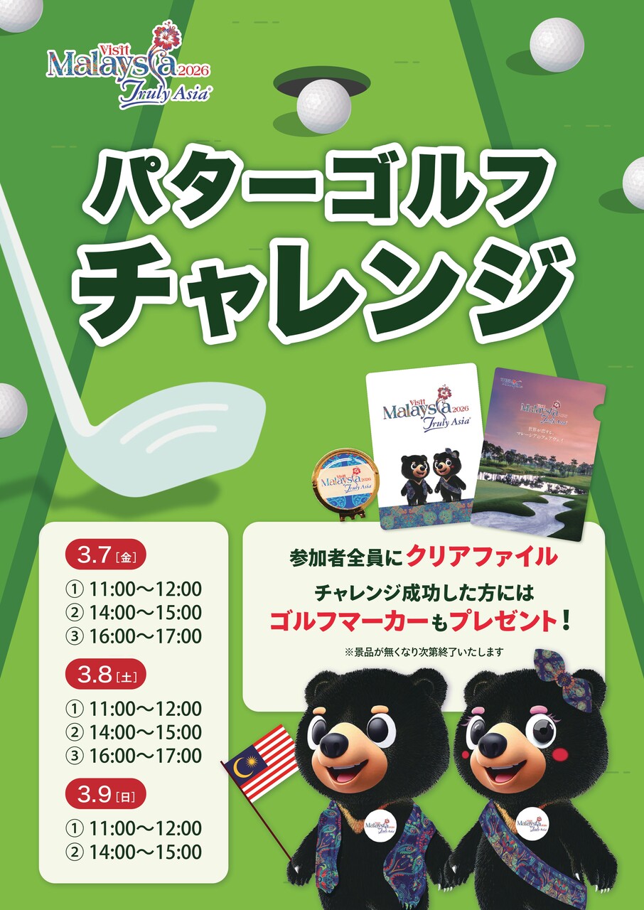 今年のゴルフフェアでは、3日間にわたって、ゴルフ好きの皆様にお楽しみいただけるイベントが盛りだくさん!その中でも、当局ブースではトークショーを開催いたします。お聞きしていただいた方を対象に、マレーシア往復航空券をはじめ豪華賞品が当たる抽選会を毎日開催します