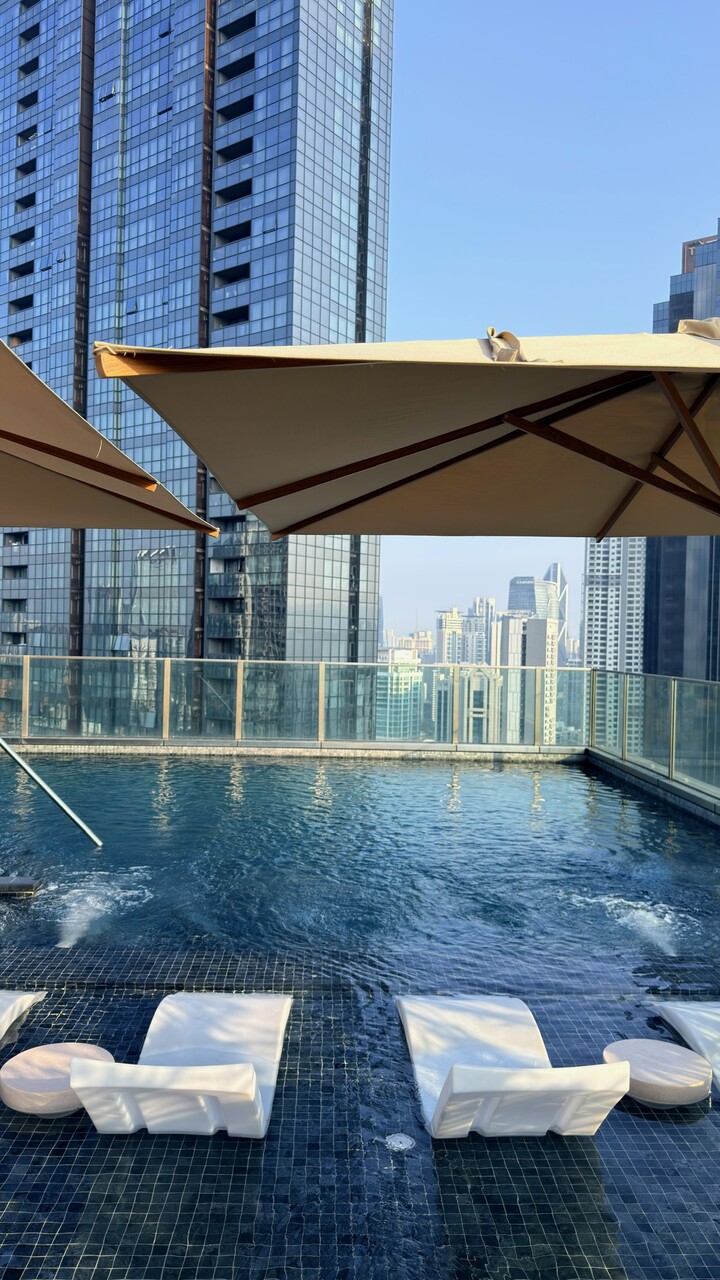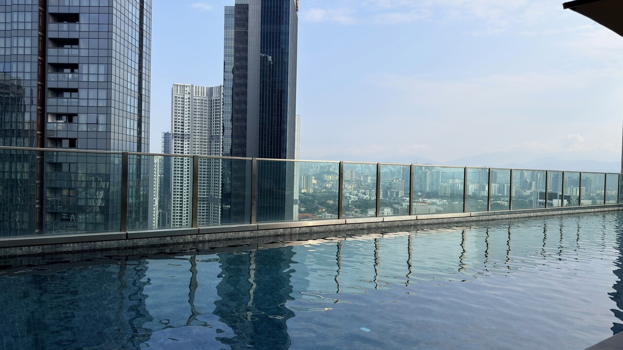 目の前に広がるクアラルンプールの街をぼんやり眺めつつ、屋上プールでリラックス...